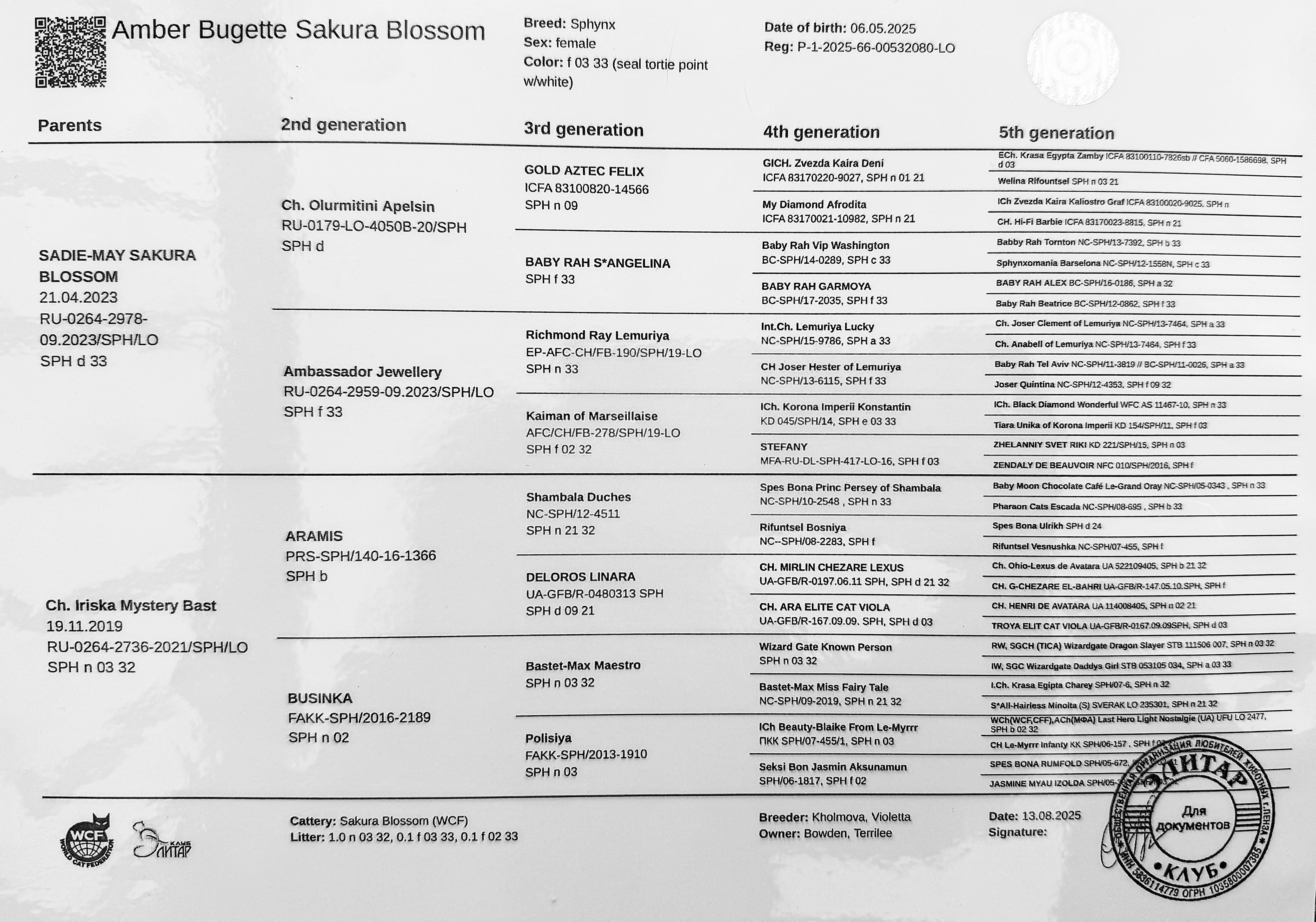 Amber is the newest addition to our cattery, and after counting down the days until her arrival, she is FINALLY here, and what a STUNNER she is! She’s made the journey all the way from Pskov, Russia, and we’re so grateful to once again be working with our dear friend and trusted breeder, Violetta. Her name was a special collaboration between Violetta and us here at EZAcres—chosen to reflect her vivid orange ear markings (on the back, of course) and the unique, whimsical pattern on her body that reminds us of a ladybug. We’re absolutely thrilled to welcome Amber into our cattery family and are already relishing in the joy and beauty she brings to our home!